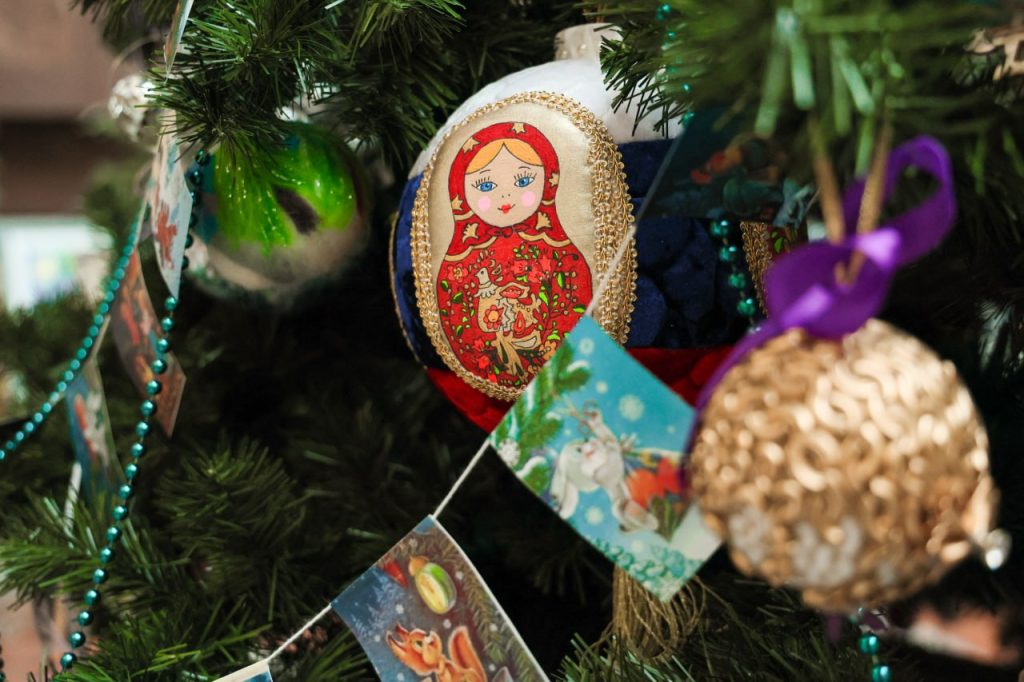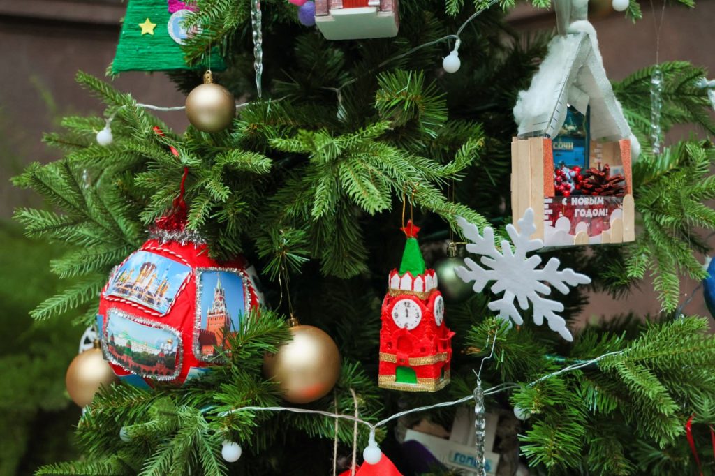 Новогодние деревья украшены уникальными ёлочными изготовленными вручную игрушками от участников и победителей международного конкурса — детей наших соотечественников, проживающих за рубежом, из 86 стран мира, а также ребят из трёх городов федерального значения, девяти краёв, 20 республик и 43 областей России, в том числе из исторических регионов нашей страны.