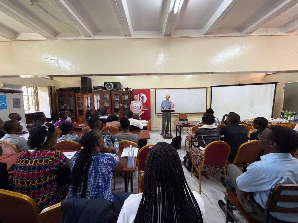 14 февраля 2026 года в центре Фонда «Русский мир» на территории Государственного университета Макерере прошло два мероприятия: ребята прослушали лекцию о дипломатии, приуроченную ко дню дипломата 10 февраля, и лекцию о профессии дипломата в целом. Студенты узнали, где можно обучиться навыкам: в каких университетах можно получить дипломатические профессии, и, смогли задать тематические вопросы представителю посольства РФ, Лобанову Сергею Васильевичу.